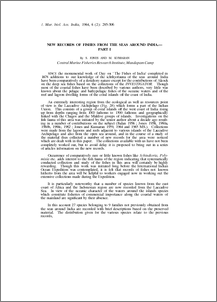 Jones, S and Kumaran, M (1964) Duplicate entry================================New records of fishes from the seas around India - Part I. Journal of the Marine Biological Association of India, 6 (2). pp. 285-306.